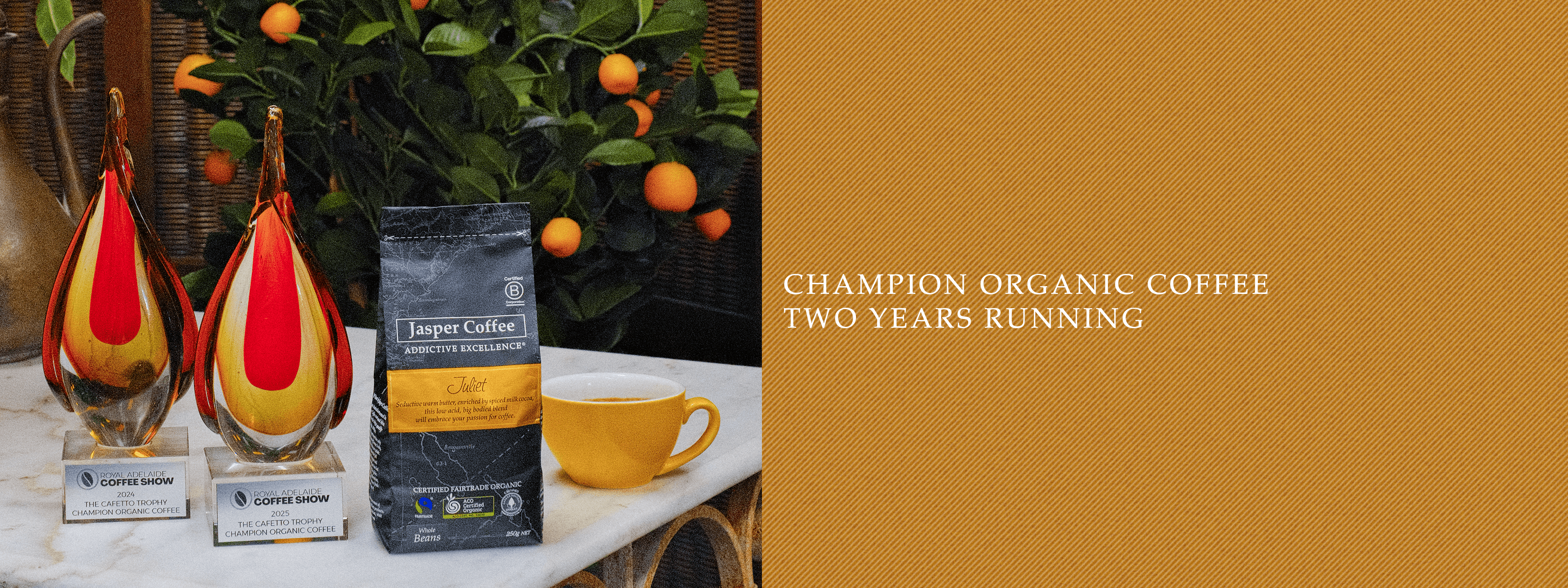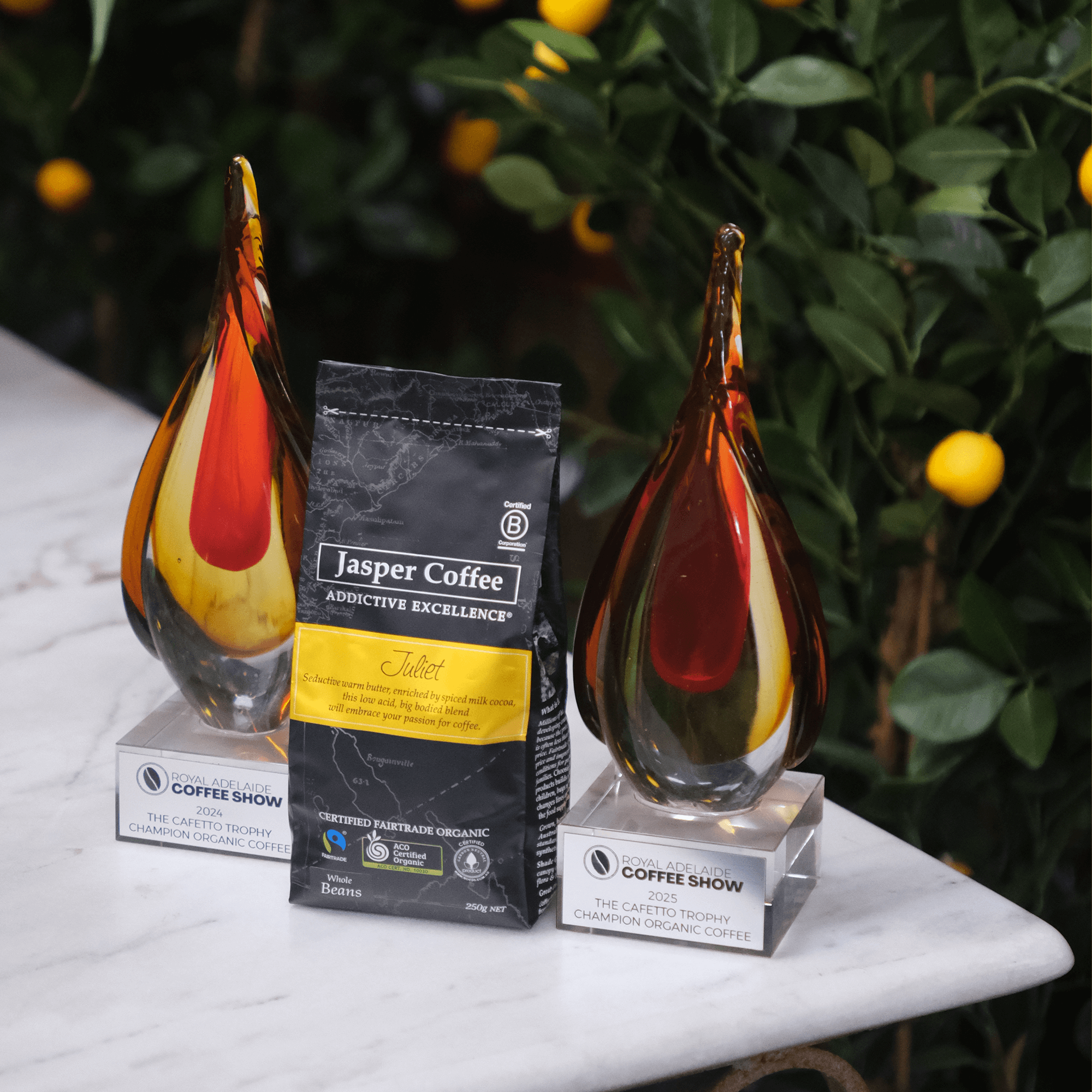 Juliet has taken the Champion Organic Coffee Trophy at the 2025 Royal Adelaide Coffee Show again.